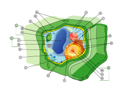Oddiy o'simlik hujayrasining tarkibiy qismlari: с - Hujayra devori