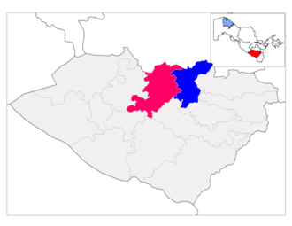 Chiroqchi tumani hududining Chiroqchi (koʻk rangda) va Koʻkdala (qizil rangda) tumanlariga boʻlinishi