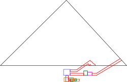 U ohaktosh va granitdan qurilgan. Yuqori qismi boshqa piramidalardagi kabi Tura ohaktoshlari bilan qoplangan.