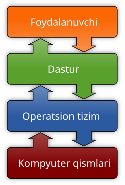 Ishlatuv tizimi — kompyuter programmalarining yigʻindisidir. Ishlatuv tizimi(Operatsionnaya sistema)kompyuter va foydalanuvchi orasidagi koʻprik boʻlib, u foydalanuvchi uchun kompyuterni ishlatishni osonlashtiradi. U barcha kompyuterdagi programmalarga va kompyuterning har xil qismlari(hardware: printer, disk oʻqiydigan, harddisk, matritsa)ga link yaratadi. Shunda kompyuterdagi bitta ikonkani bosib biron programmani ochish mumkin. Avvallari esa Ishlatuv tizimi buyruq oynalaridan iborat boʻlgan. U paytlar faqat oynada buyruqni yozib keyin programmani ochish mumkin boʻlgan. Hozirgi Ishlatuv tizimlari oson va qulayroq. Sichqonchani programma ikonkasiga olib borib bir yoki ikki marta bosish bilan programmani ochish mumkin.